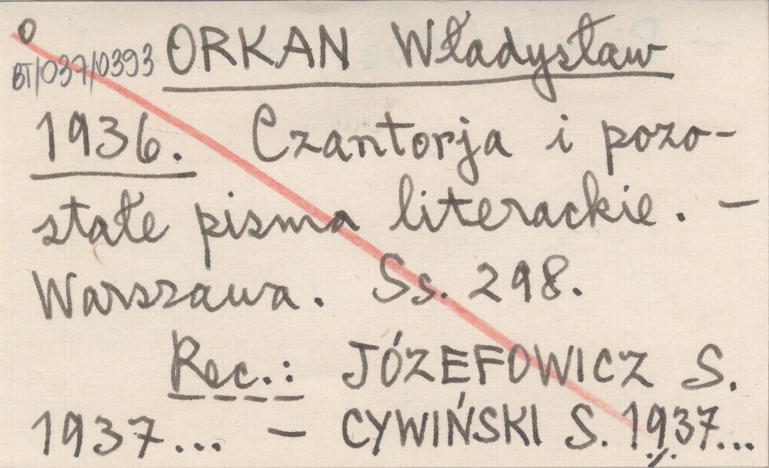 ORKAN Władysław 1936 Czantorja i pozostałe pisma literackie.