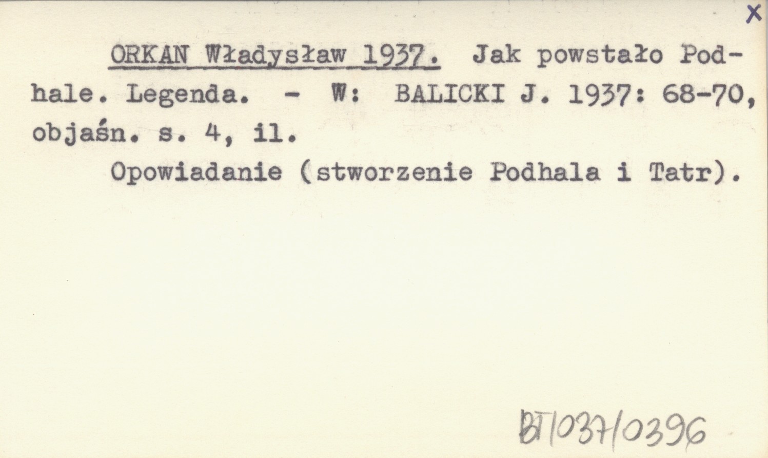 BALICKI J. 1937: 68-70, obj. (s. 4), il. , Opowiadanie (stworzenie Podhala i Tatr).