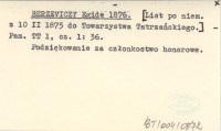 BERZEVICZY Egide 1876 [List po niem. z 10 II 1875 do Towarzystwa Tatrzańskiego.]