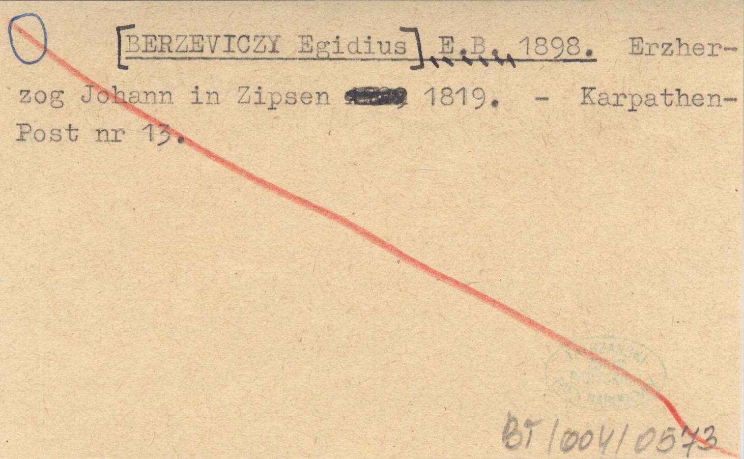 E.B. [BERZEVICZY Egidius] 1898 Erzherzog Johann in Zipsen 1819.