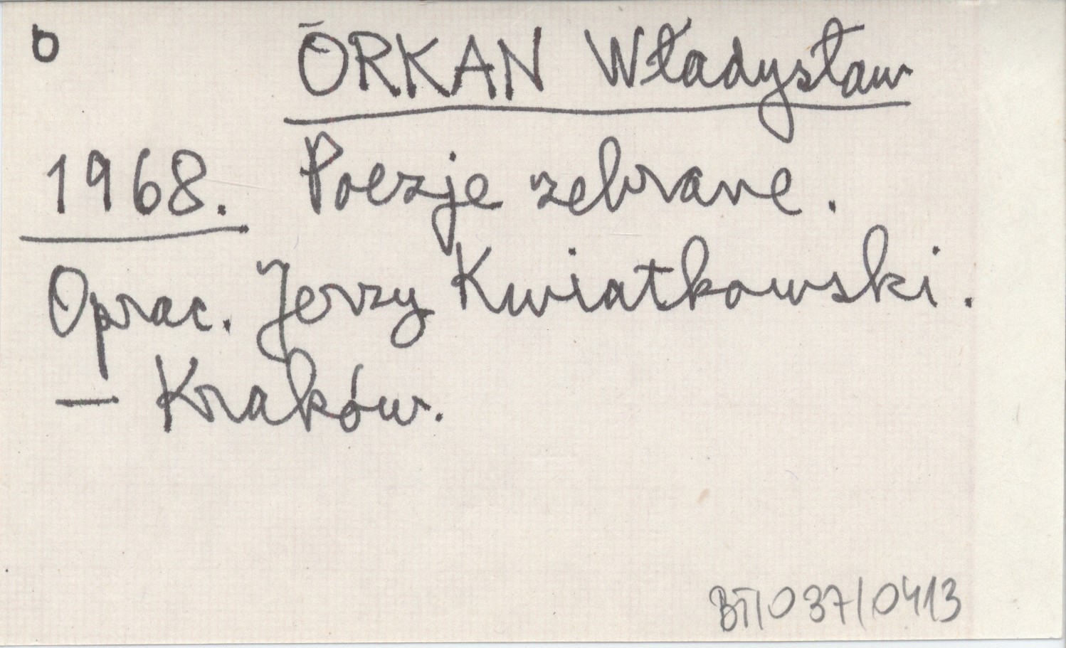 ORKAN Władysław 1968 Poezje zebrane. Oprac. Jerzy Kwiatkowski.