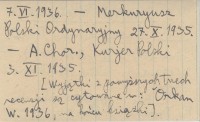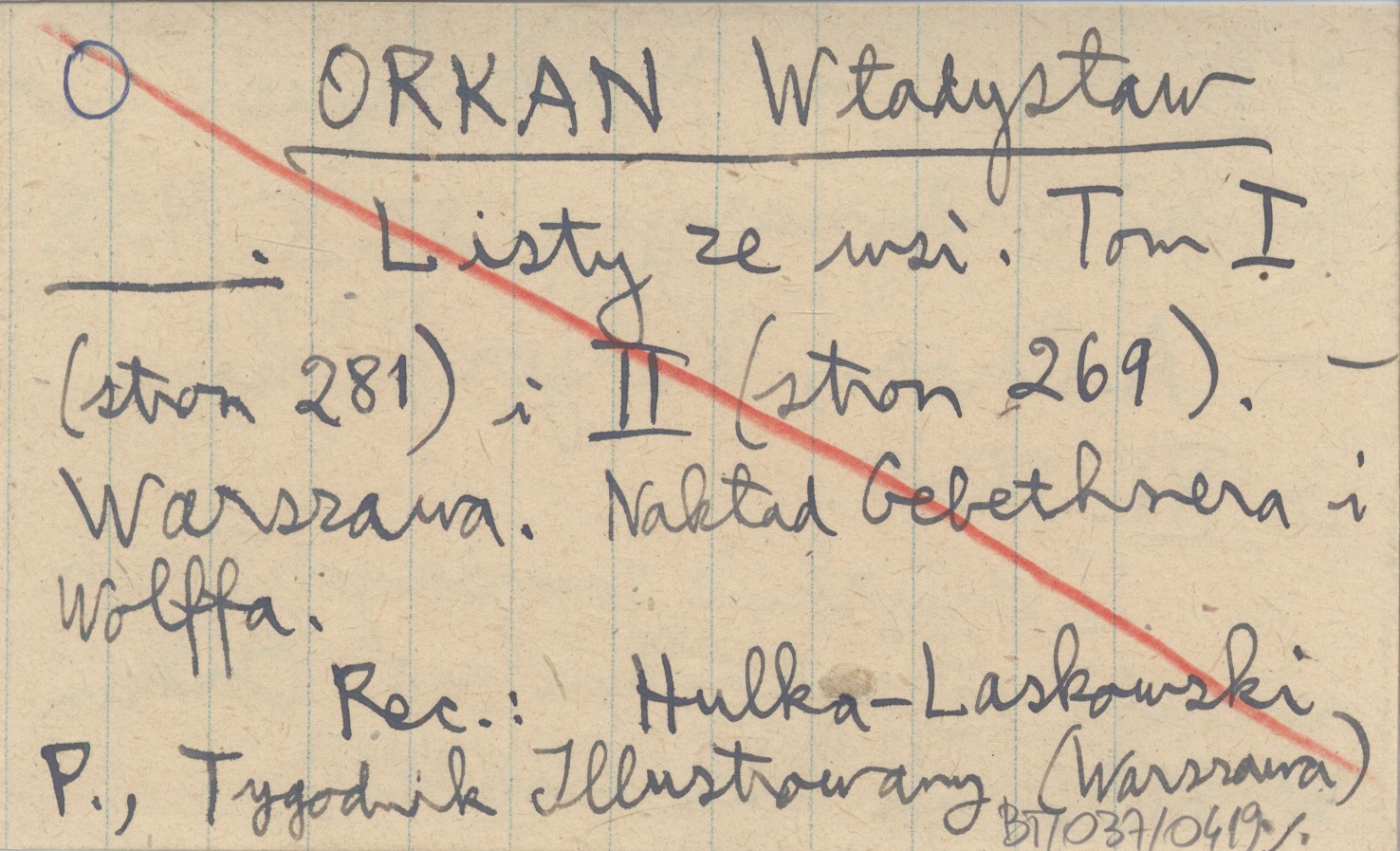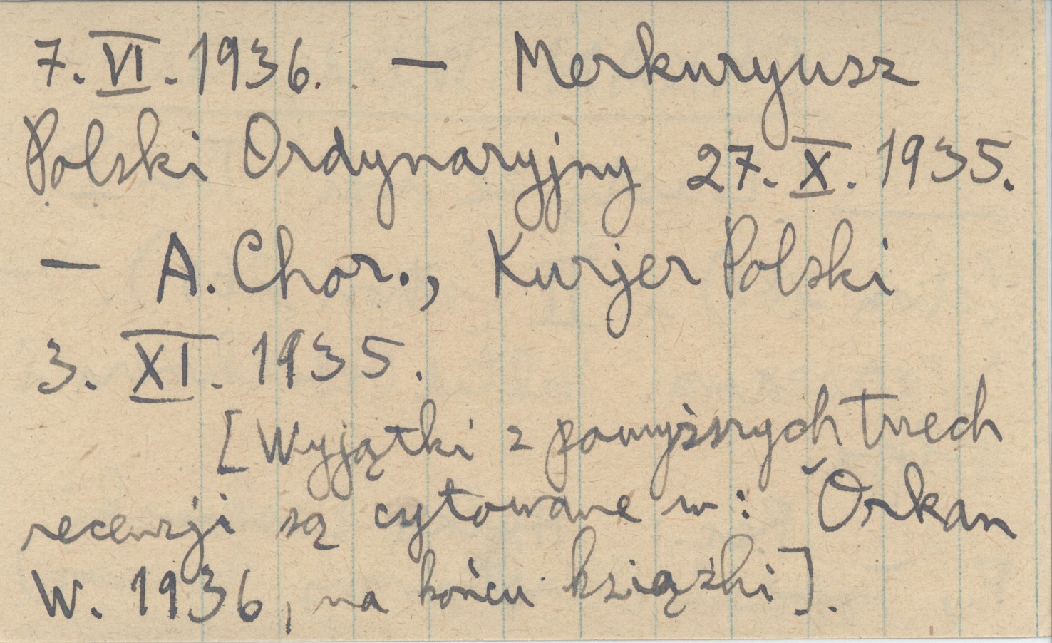 Warszawa , T. 1: 281; t. 2: 269. Nakład Gebethnera i Wolffa. [Wyjątki z poniższych trzech recenzji są cytowane w: Orkan W. 1936, na końcu książki]. REC: Hulka-Laskowski P., Tygodnik Illustrowany (Warszawa) 7.VI.1936. Merkuryusz Polski Ordynaryjny 27.X.1935. A. Chor., Kurjer Polski 3.XI.1935.