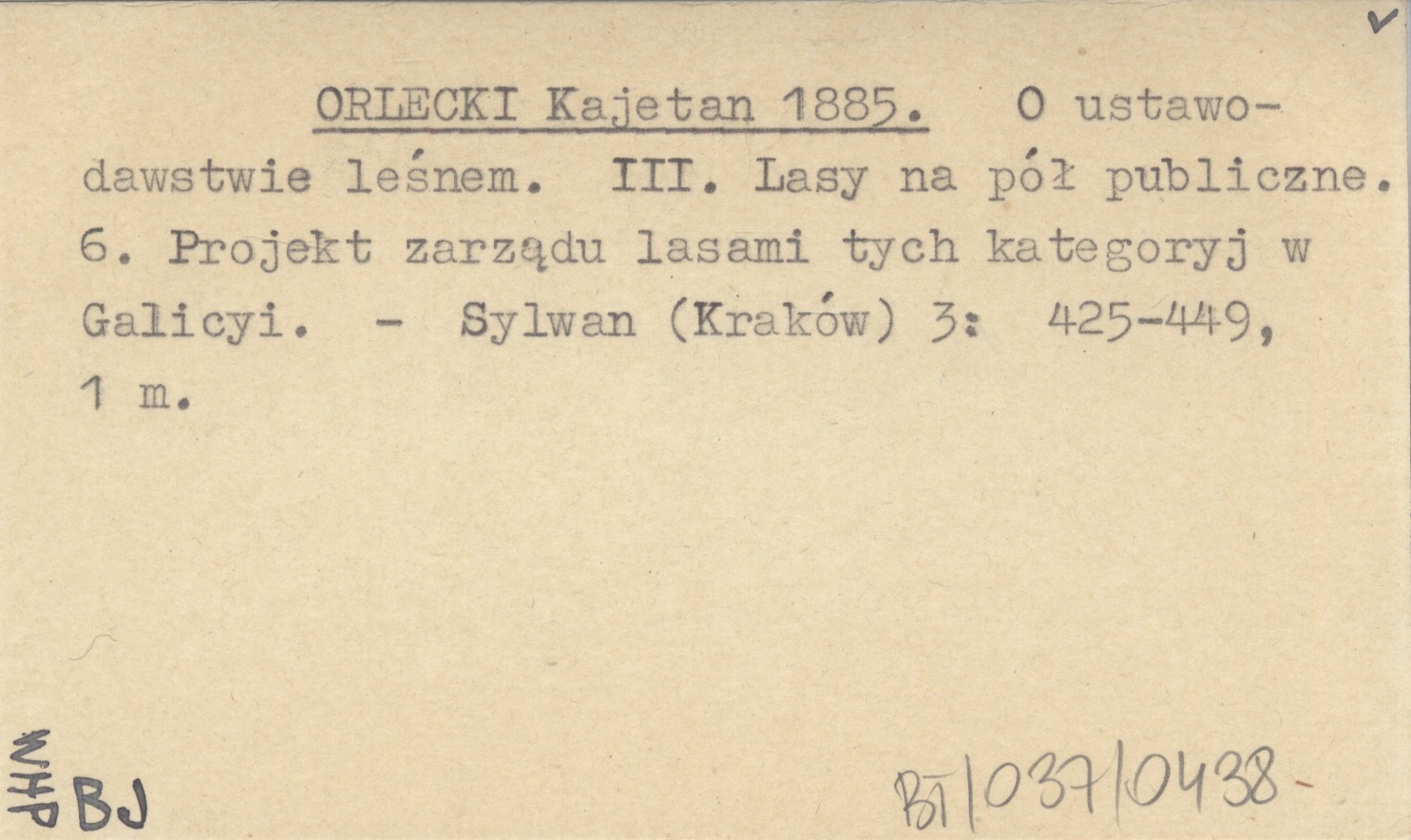 ORLECKI Kajetan 1885 O ustawodawstwie leśnym. III. Lasy na pół publiczne. 6. Projekt zarządu lasami tych kategoryj w Galicyi.