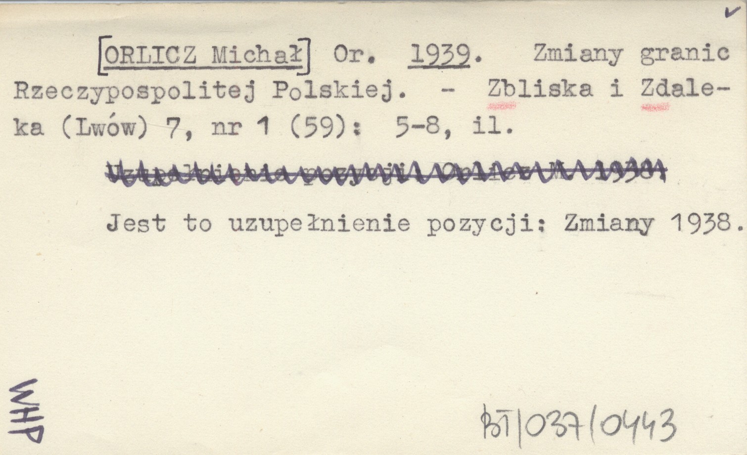 Zbliska i Zdaleka (Lwów) , 7, nr 1 (59): 5-8, il. Jest to uzupełnienie pozycji: Zmiany 1938.