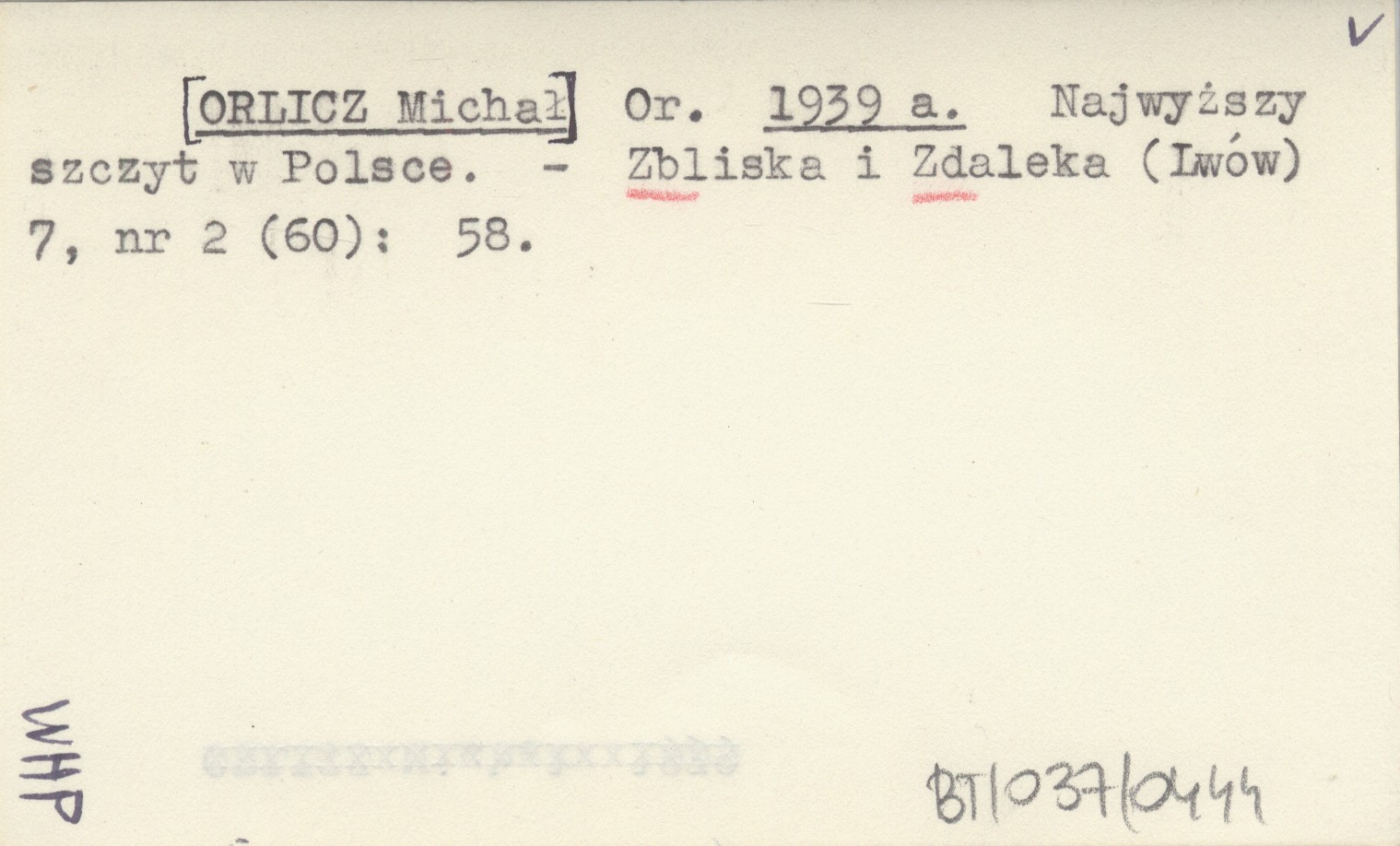 Or. [ORLICZ Michał] 1939 a Najwyższy szczyt w Polsce.