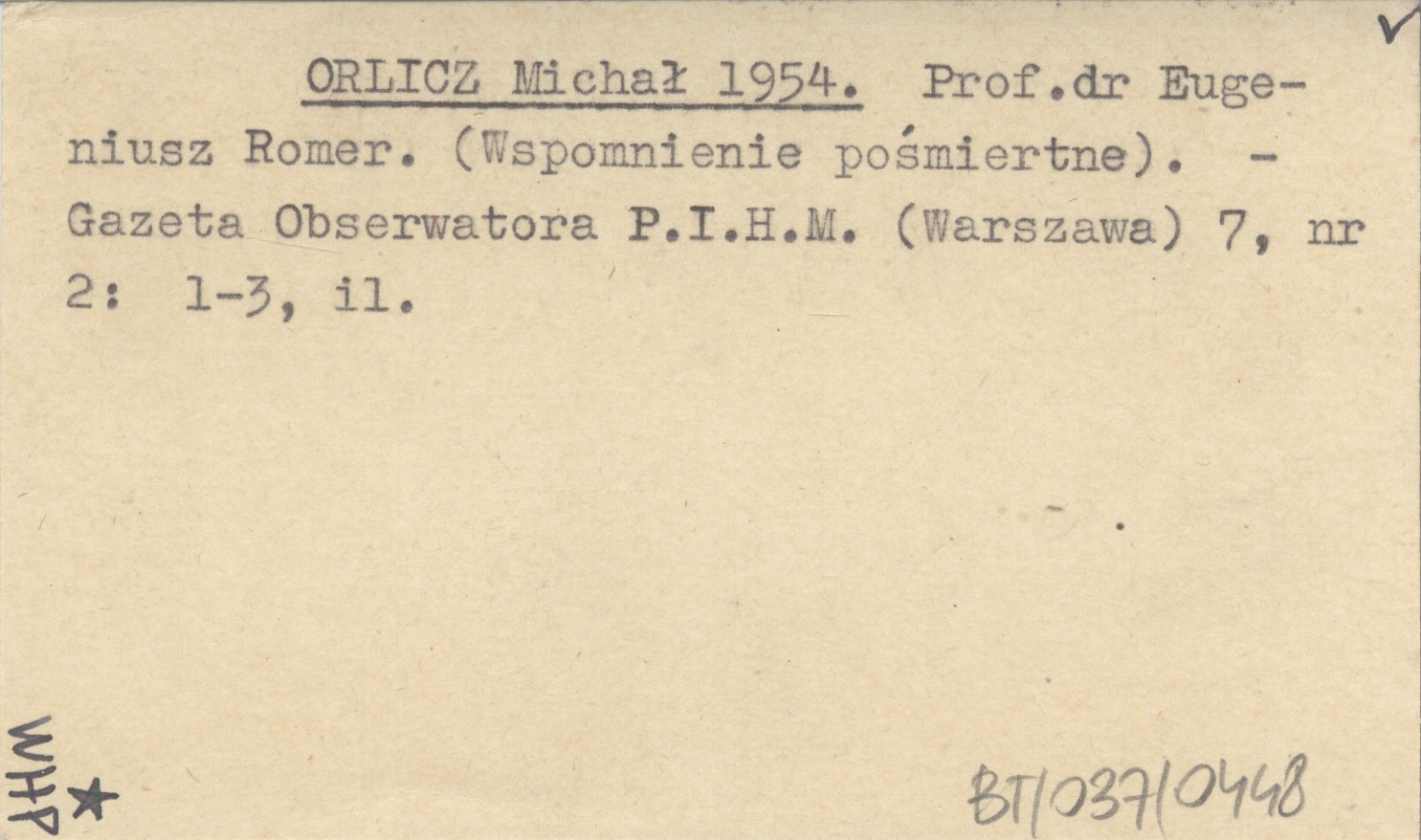 ORLICZ Michał 1954 Prof. dr Eugeniusz Romer. (Wspomnienie pośmiertne).