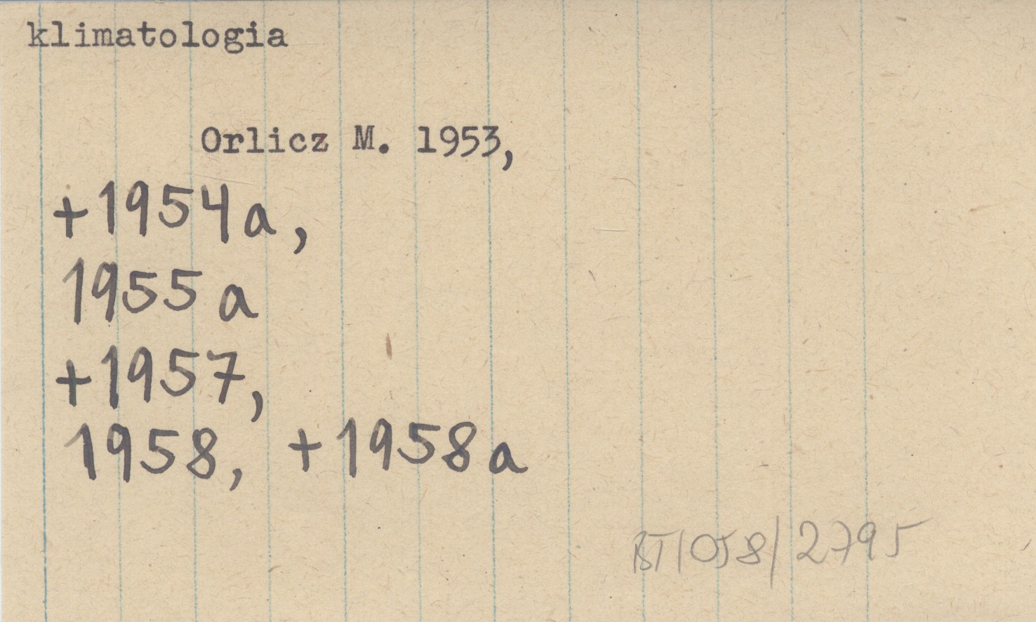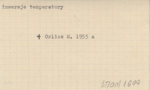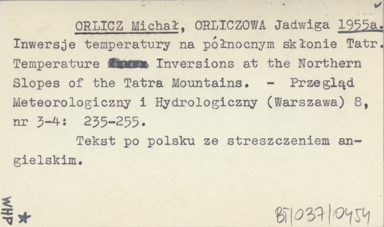ORLICZ Michał ORLICZOWA, Jadwiga. ; 1955 a Inwersje temperatury na północnym skłonie Tatr. Temperature Inversions at the Northern Slopes of the Tatra Mountains.