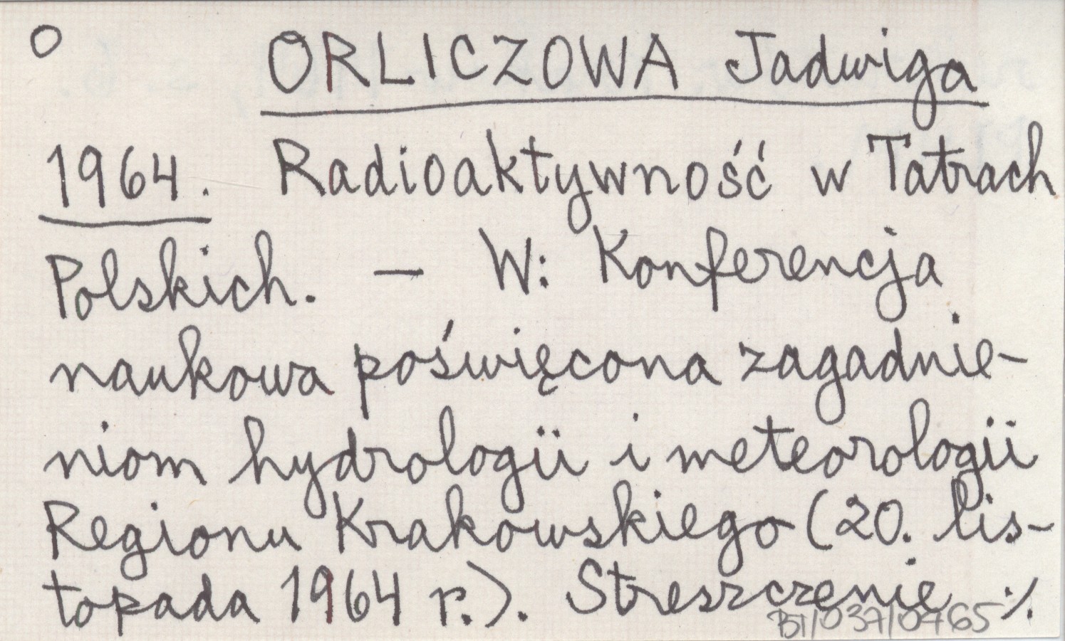 ORLICZOWA Jadwiga 1964 Radioaktywność w Tatrach Polskich.