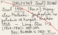SZABÓ Jozef [ORLOVSKÝ Jozef] 1940 Mieczysław Małecki: Język polski na południe od Karpat. Kraków 1938.