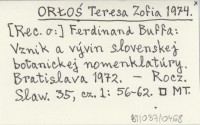 ORŁOŚ Teresa Zofia 1974 Ferdinand Buffa: Vznik a vývin slovenskej botanickej nomenklatúry. Bratislava 1972.