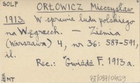 ORŁOWICZ Mieczysław 1913 W sprawie ludu polskiego na Węgrzech.