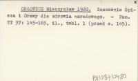 ORŁOWICZ Mieczysław 1920 Znaczenie Spisza i Orawy dla zdrowia narodowego.