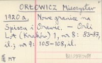 ORŁOWICZ Mieczysław 1920 a Nowe granice na Spiszu i Orawie.