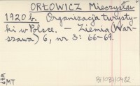 ORŁOWICZ Mieczysław 1920 b Organizacja turystyki w Polsce.