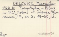ORŁOWICZ Mieczysław 1922 b Turystyka w Polsce w 1921 roku.