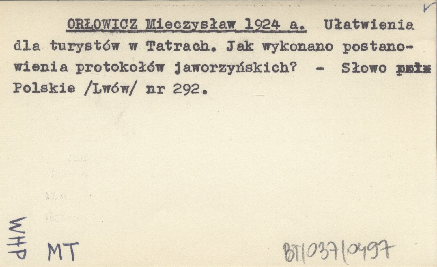 ORŁOWICZ Mieczysław 1924 a Ułatwienia dla turystów w Tatrach. Jak wykonano postanowienia protokołów jaworzyńskich?
