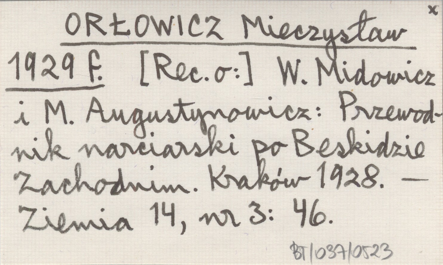 ORŁOWICZ Mieczysław 1929 f W. Midowicz i M. Augustynowicz: Przewodnik narciarski po Beskidzie Zachodnim. Kraków 1928.