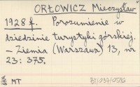 ORŁOWICZ Mieczysław 1928 f Porozumienie w dziedzinie turystyki górskiej.