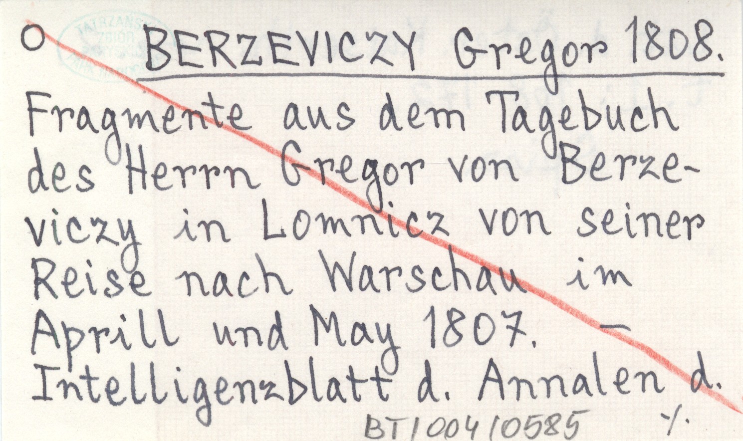 BERZEVICZY Gregor 1808 Fragmente aus dem Tagebuch des Herrn Gregor von Berzeviczy in Lomnicz von seiner Reise nach Warschau im Aprill und May 1807.