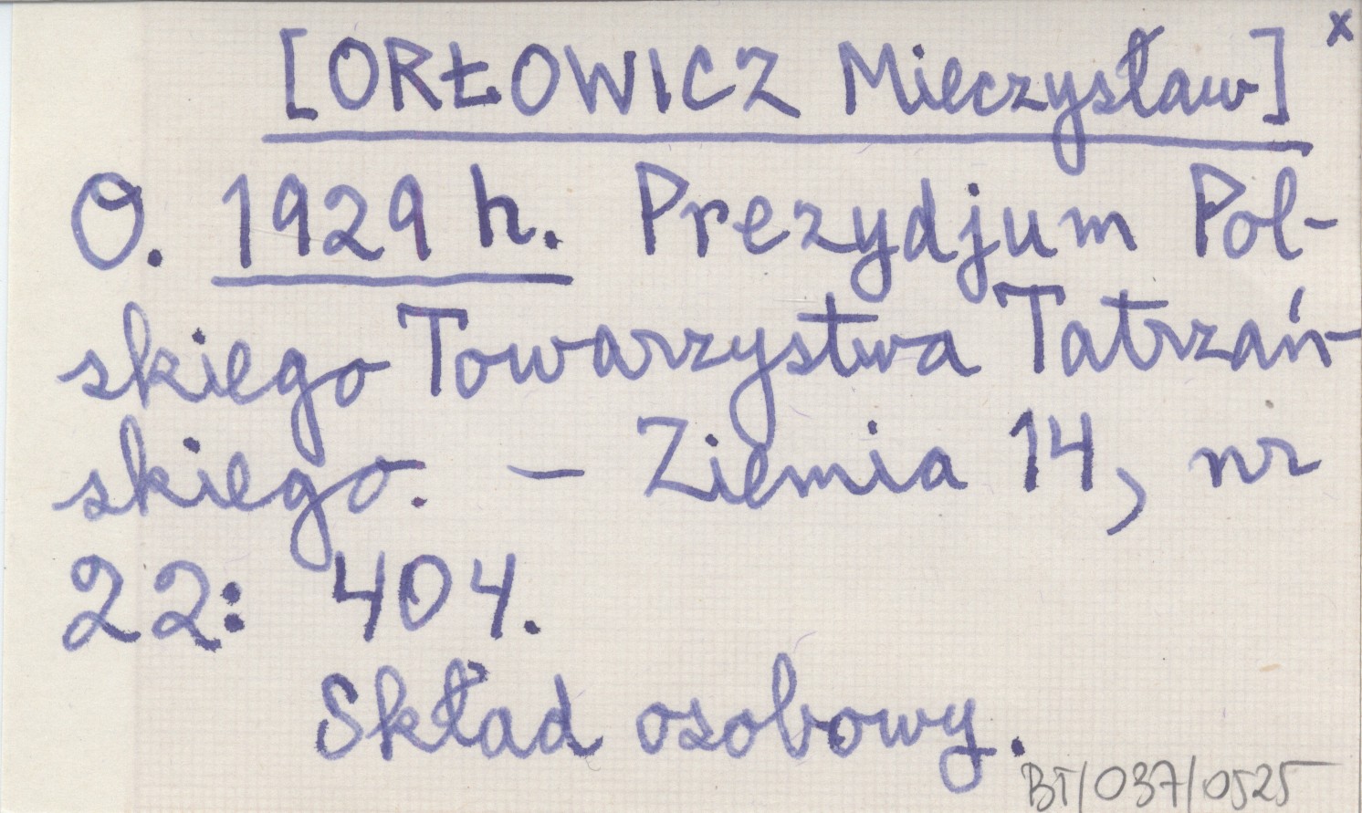 O. [ORŁOWICZ Mieczysław] 1929 h Prezydjum Polskiego Towarzystwa Tatrzańskiego.