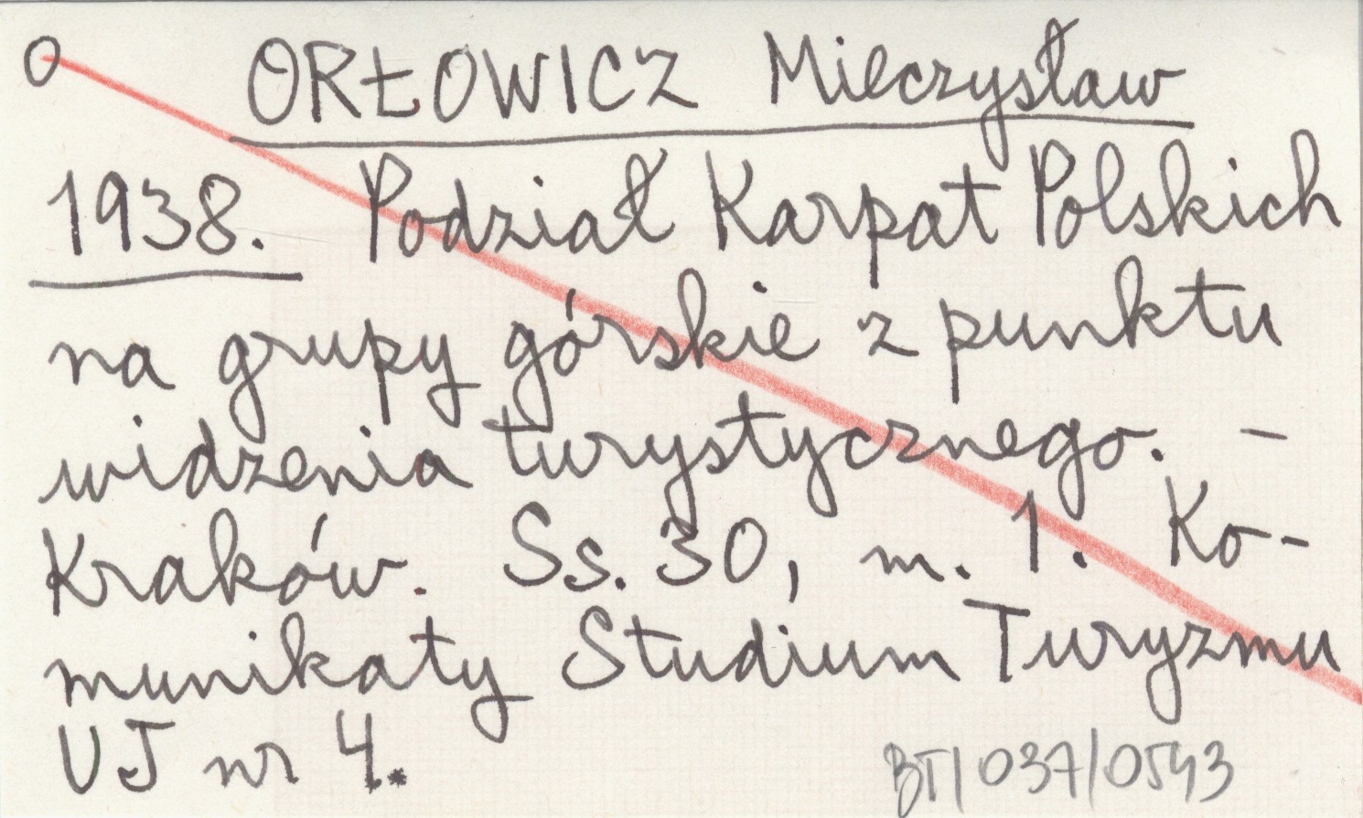 ORŁOWICZ Mieczysław 1938 Podział Karpat Polskich na grupy górskie z punktu widzenia turystycznego.