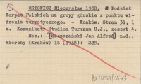 Kraków (Komunikaty Studium Turyzmu UJ ; 4) , 29, [1] s., 1 m., 8°. REC: [Szczepański Jan Alfred] n.d., Wierchy (Kraków) 16 (1938): 228.
