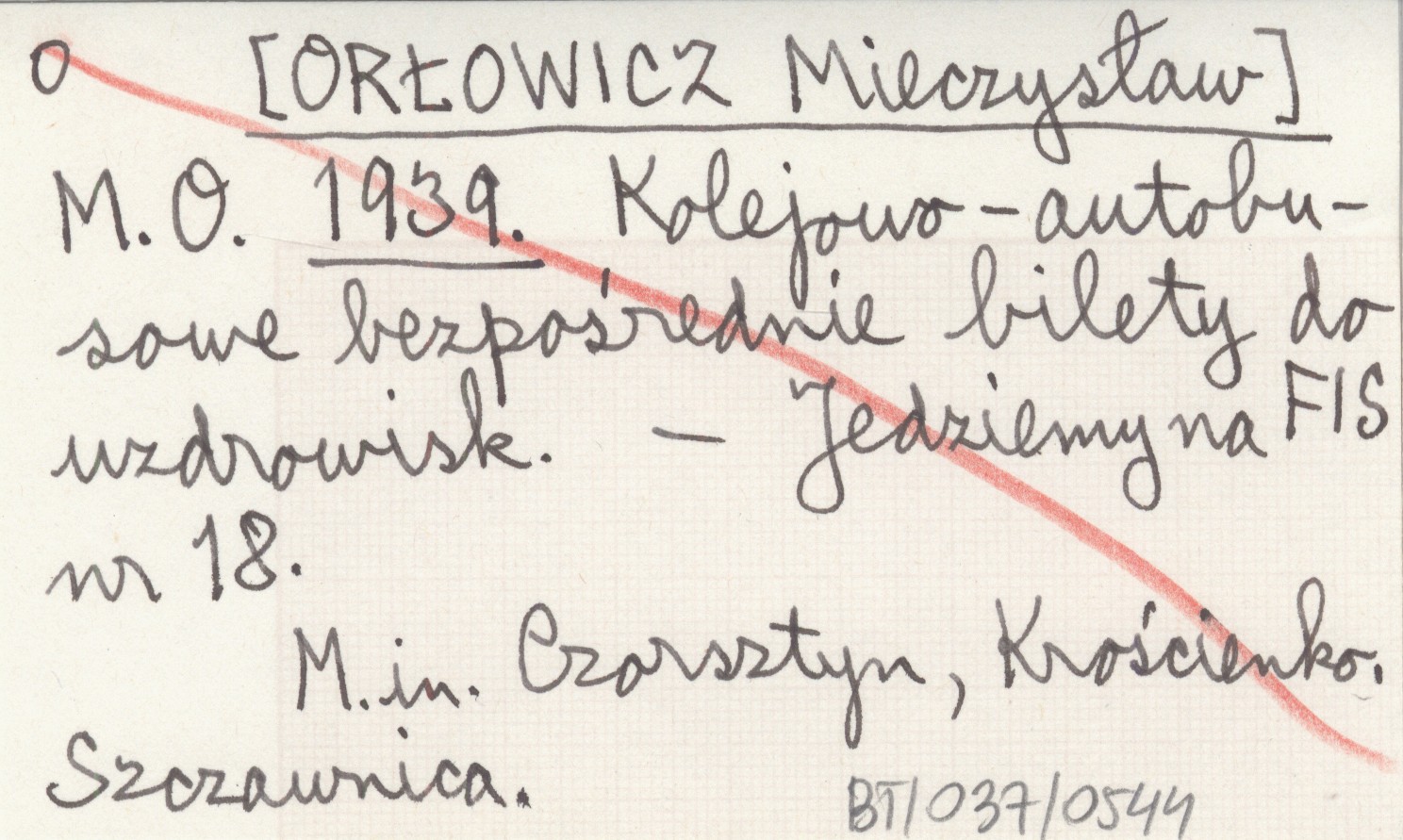 M. O. [ORŁOWICZ Mieczysław] 1939 Kolejowo-autobusowe bezpośrednie bilety do uzdrowisk.