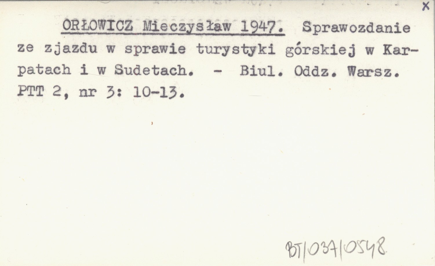 ORŁOWICZ Mieczysław 1947 Sprawozdanie ze zjazdu w sprawie turystyki górskiej w Karpatach i w Sudetach.