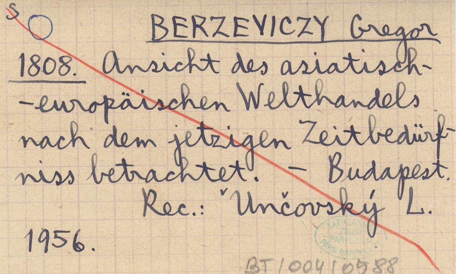 BERZEVICZY Gregor 1808 Ansicht des asiatisch-europäischen Welthandels nach dem jetzigen Zeitbedürfniss betrachtet.