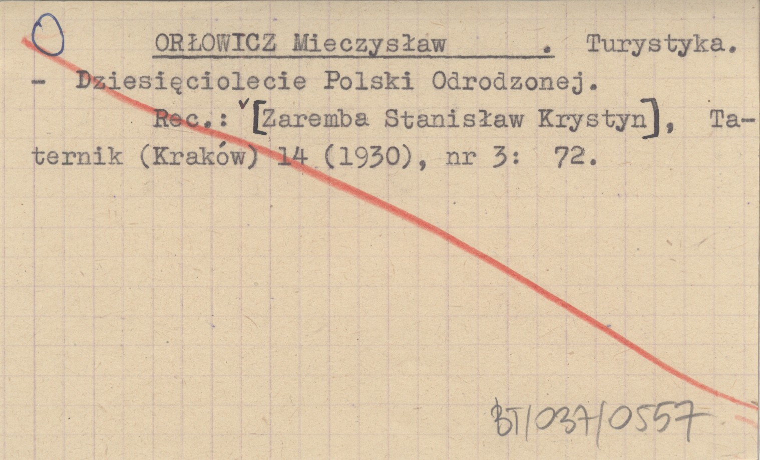Dziesięciolecie Polski Odrodzonej, REC: [Zaremba Stanisław Krystyn], Taternik (Kraków) 14 (1930), nr 3: 72.