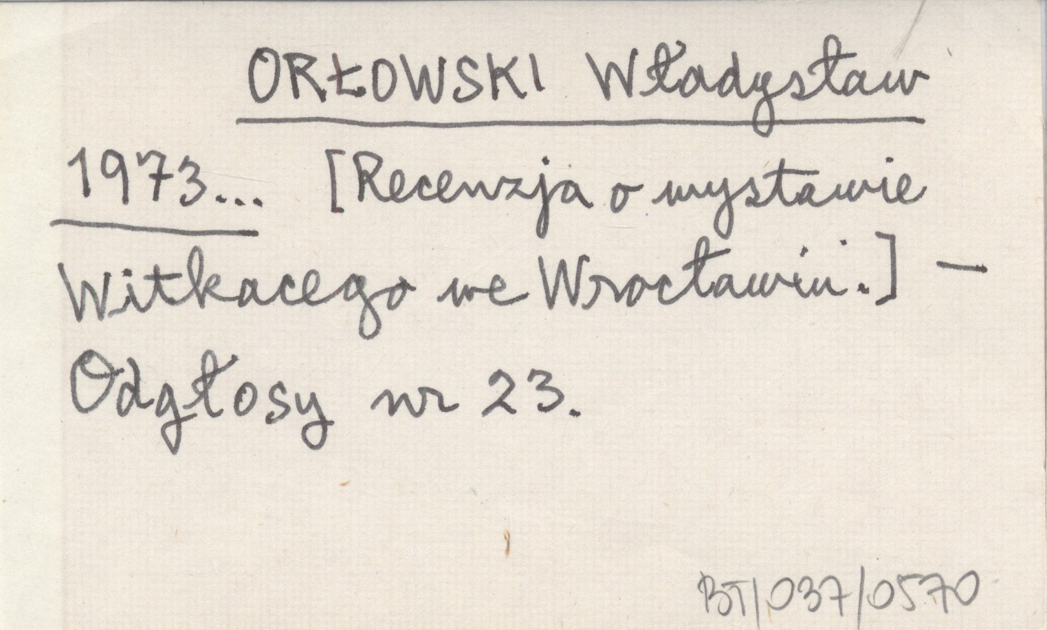 ORŁOWSKI Władysław 1973... [Recenzja o wystawie Witkacego we Wrocławiu].