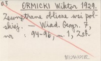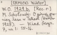 W. O. [ORMICKI Wiktor] 1929 b M. Sokołowski: O górnej granicy lasu w Tatrach (Kraków 1928).