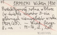 ORMICKI Wiktor 1930 Produktywność rolna w Polsce (w świetle zbiorów 5-ciu głównych ziemiopłodów w roku 1924/25).