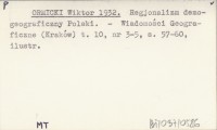 ORMICKI Wiktor 1932 Regjonalizm demograficzny Polski.