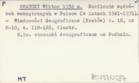 ORMICKI Wiktor 1932 a Nasilenie wędrówek wewnętrznych w Polsce (w latach 1921-1931).