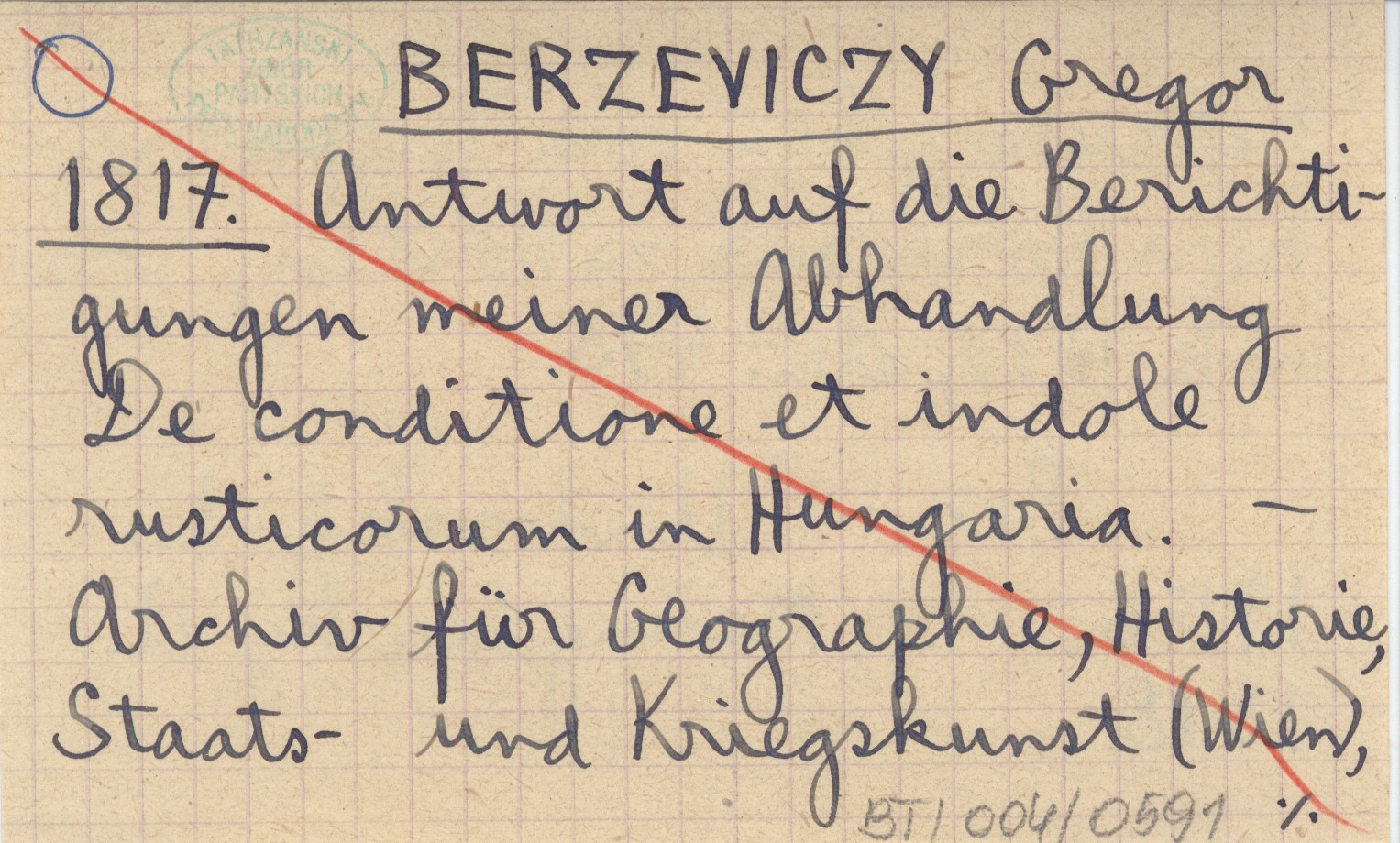 BERZEVICZY Gregor 1817 Antwort auf die Berichtigungen meiner Abhandlung De conditione et indole rusticorum in Hungaria.