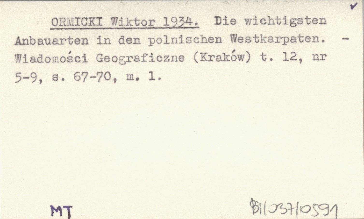 ORMICKI Wiktor 1934 Die wichtigsten Anbauarten in den polnischen Westkarpaten.