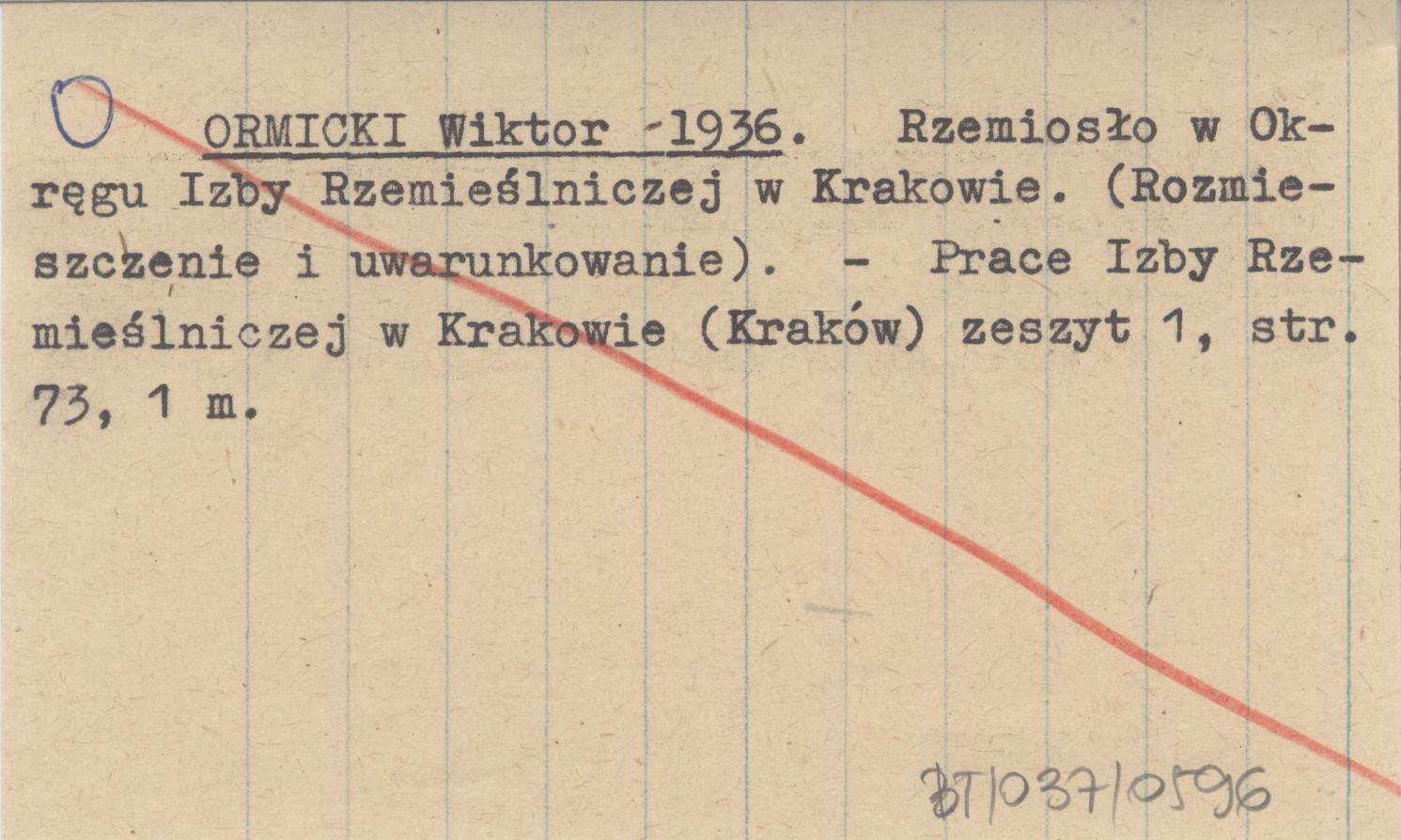 ORMICKI Wiktor 1936 Rzemiosło w Okręgu Izby Rzemieślniczej w Krakowie. (Rozmieszczenie i uwarunkowanie).