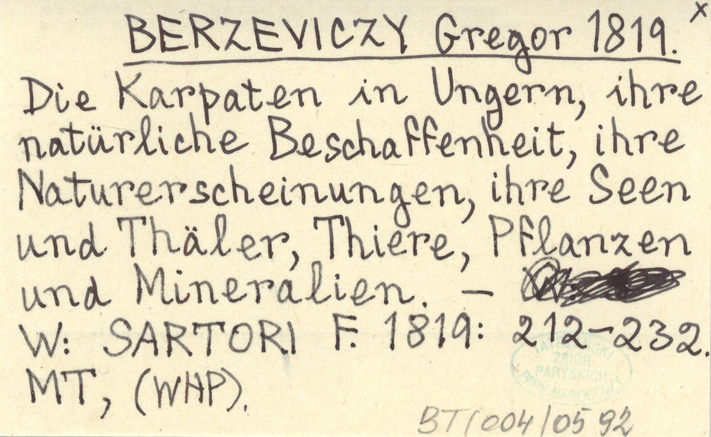 BERZEVICZY Gregor 1819 Die Karpaten in Ungern, ihre natürliche Beschaffenheit, ihre Naturerscheinungen, ihre Seen und Thäler,Thiere, Pflanzen und Mineralien.