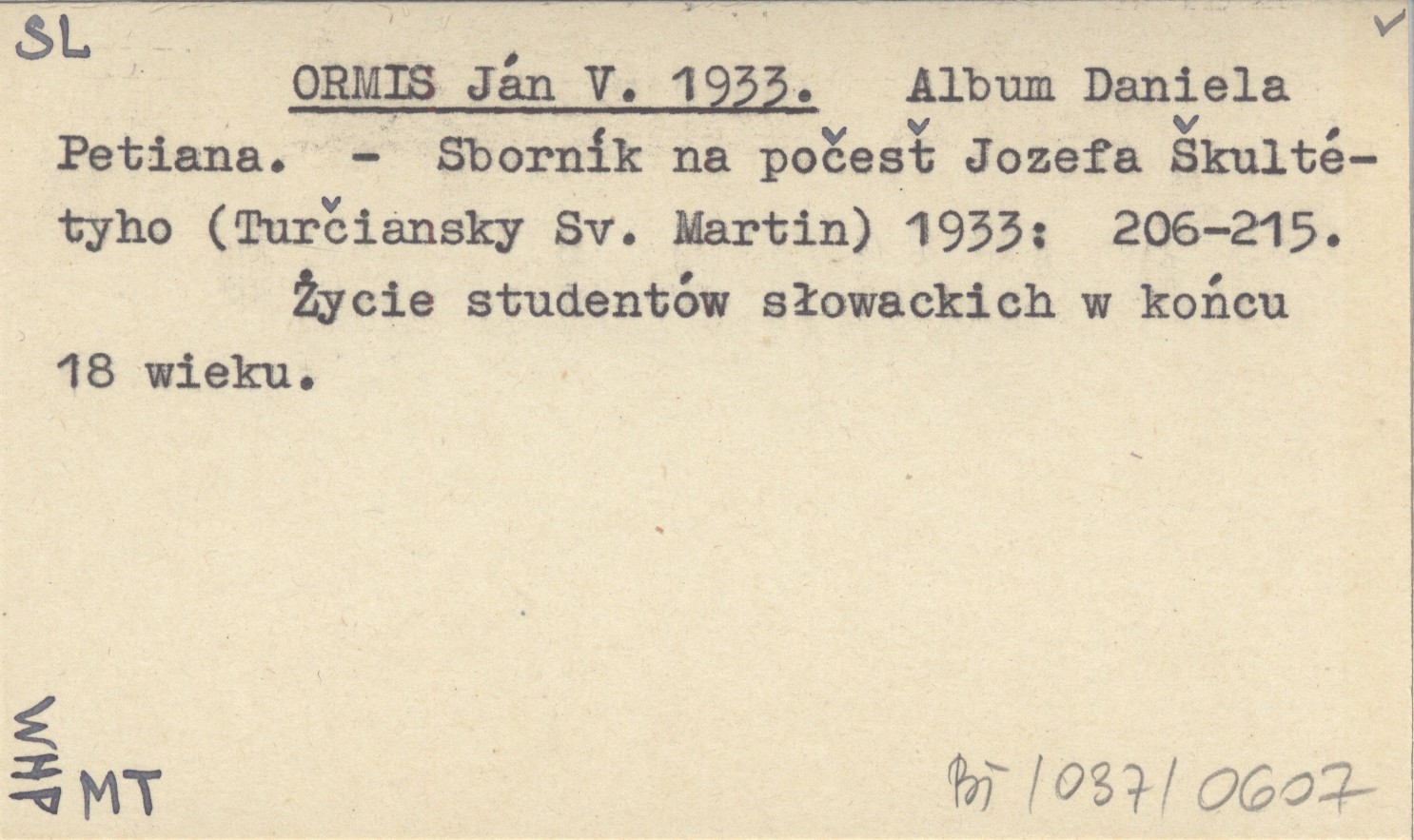 Sborník na poèes» Jozefa ©kultétyho (Turèiansky Svätę Martin) , 1933: 206-215.