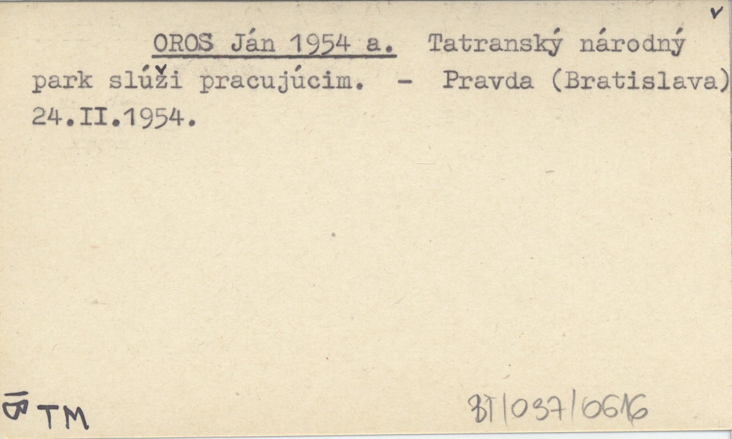 OROS Ján 1954 a Tatranský národný park slúži pracujúcim.