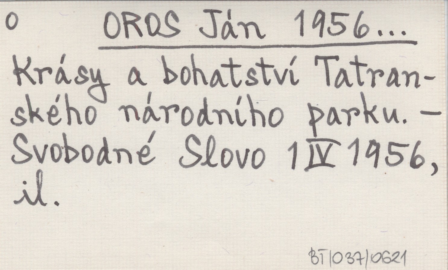 OROS Ján 1956... Krásy a bohatství Tatranského národního parku.