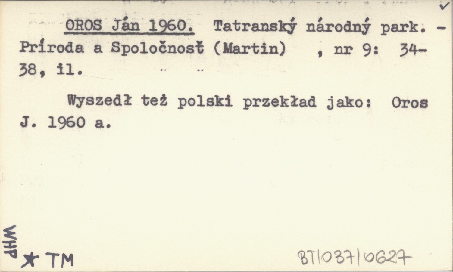 Príroda a Spoloènos» (Martin) , Nr 9: 34-38, il. Wyszedł też polski przekład jako: Oros J. 1960 a. Oros J. 1960 a
