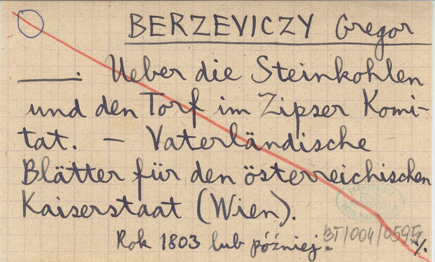 Vaterländische Blätter für den österreichischen Kaiserstaat (Wien) , Rok 1803 lub później. REC: UNČOVSKÝ L. 1956