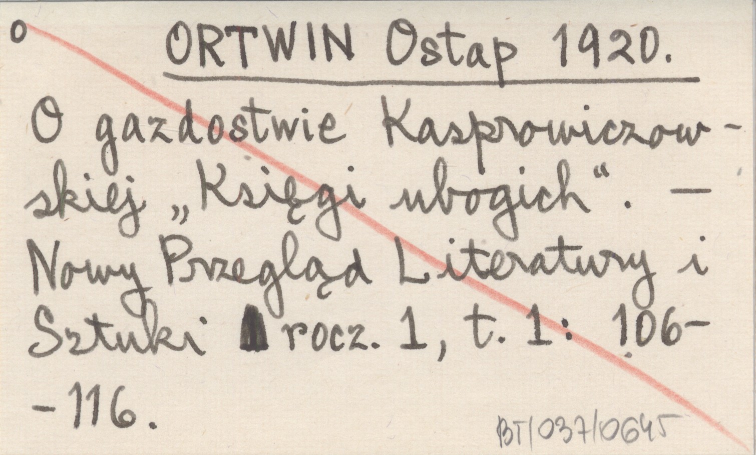 ORTWIN Ostap 1920 O gazdostwie Kasprowiczowskiej "Księgi ubogich".
