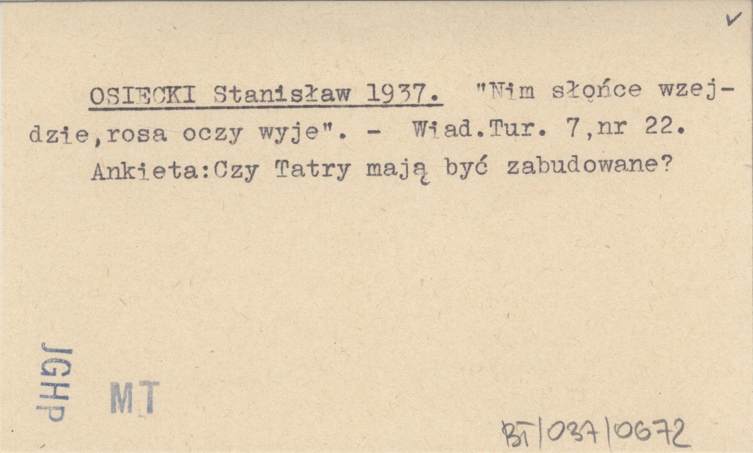 Wiadomości Turystyczne, 7, nr 22. Ankieta: Czy Tatry mają być zabudowane?