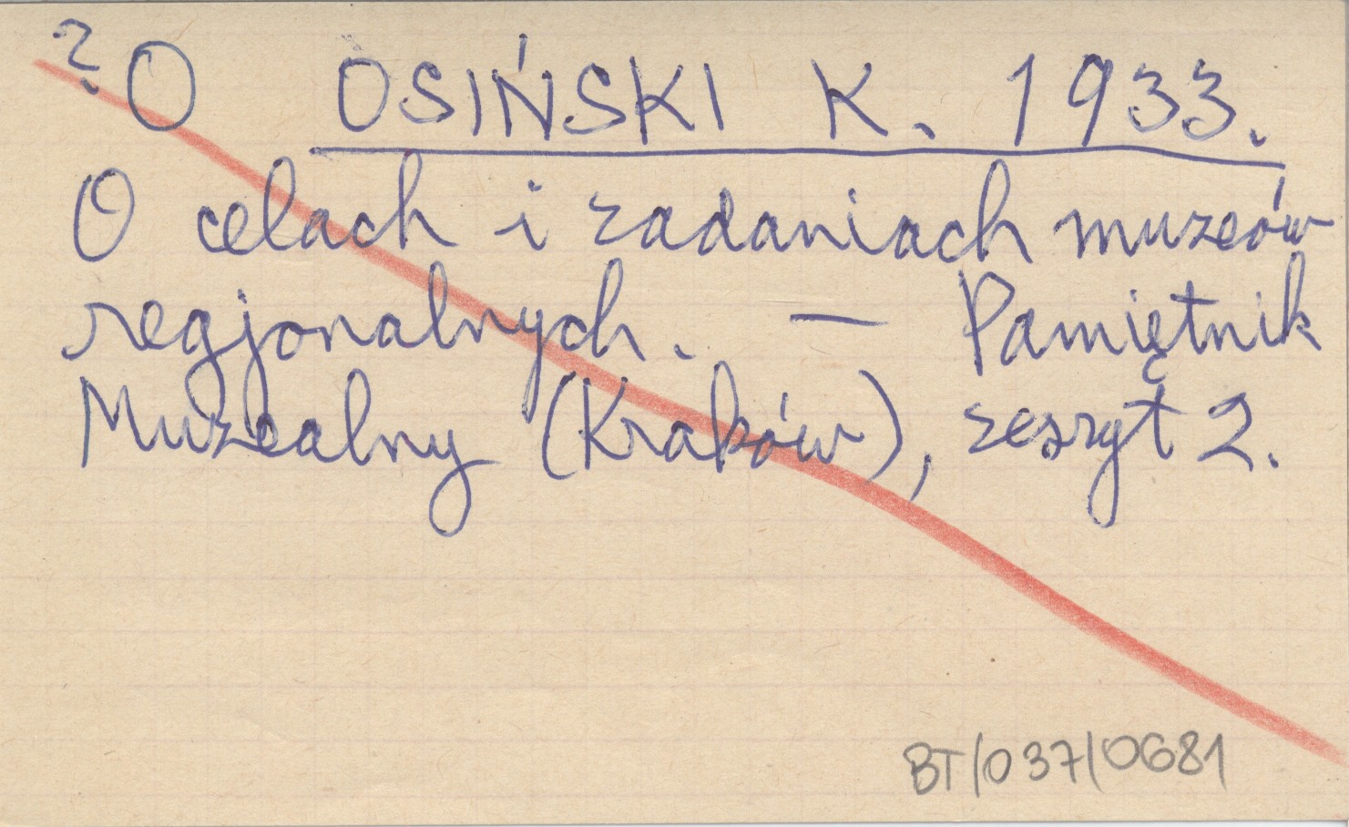 OSIŃSKI K. 1933 O celach i zadaniach muzeów regjonalnych.