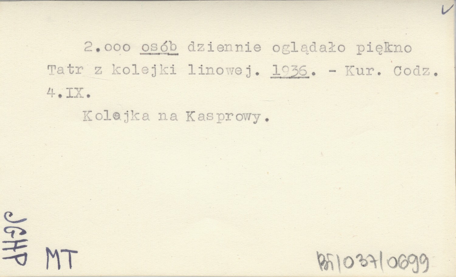 Kurier Codzienny, 4.IX. Kolejka na Kasprowy.