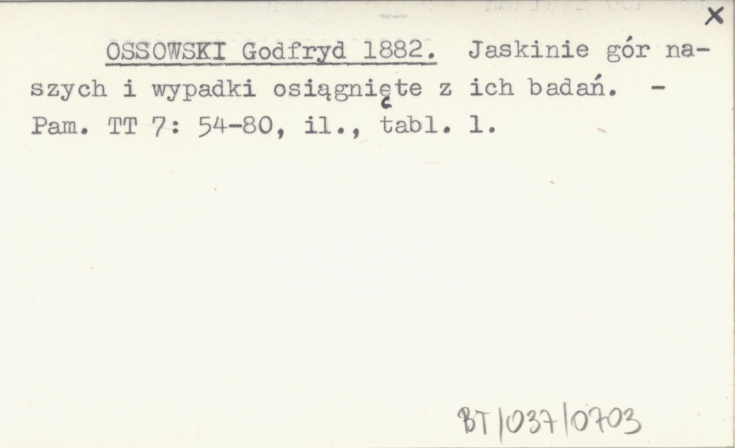 OSSOWSKI Godfryd 1882 Jaskinie gór naszych i wypadki osiągnięte z ich badań.