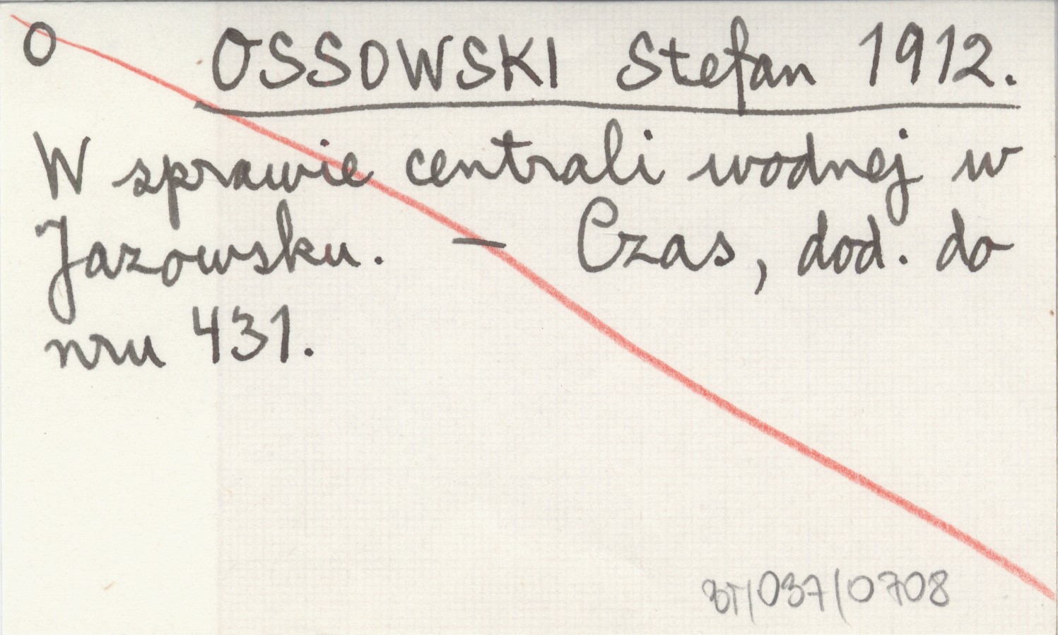 OSSOWSKI Stefan 1912 W sprawie centrali wodnej w Jazowsku.